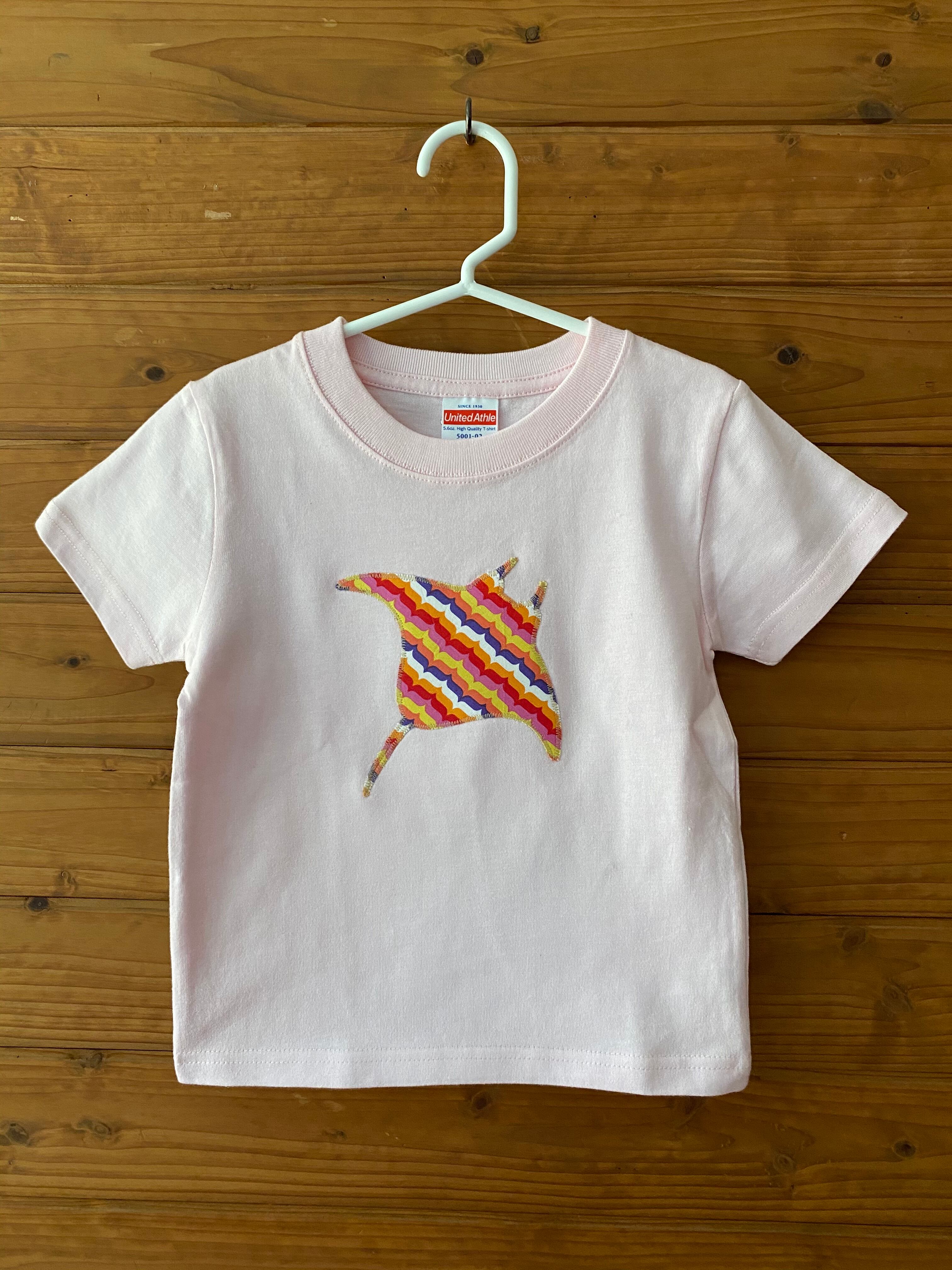 ベビーピンクにカラフルなマンタアップリケkidsTシャツ!